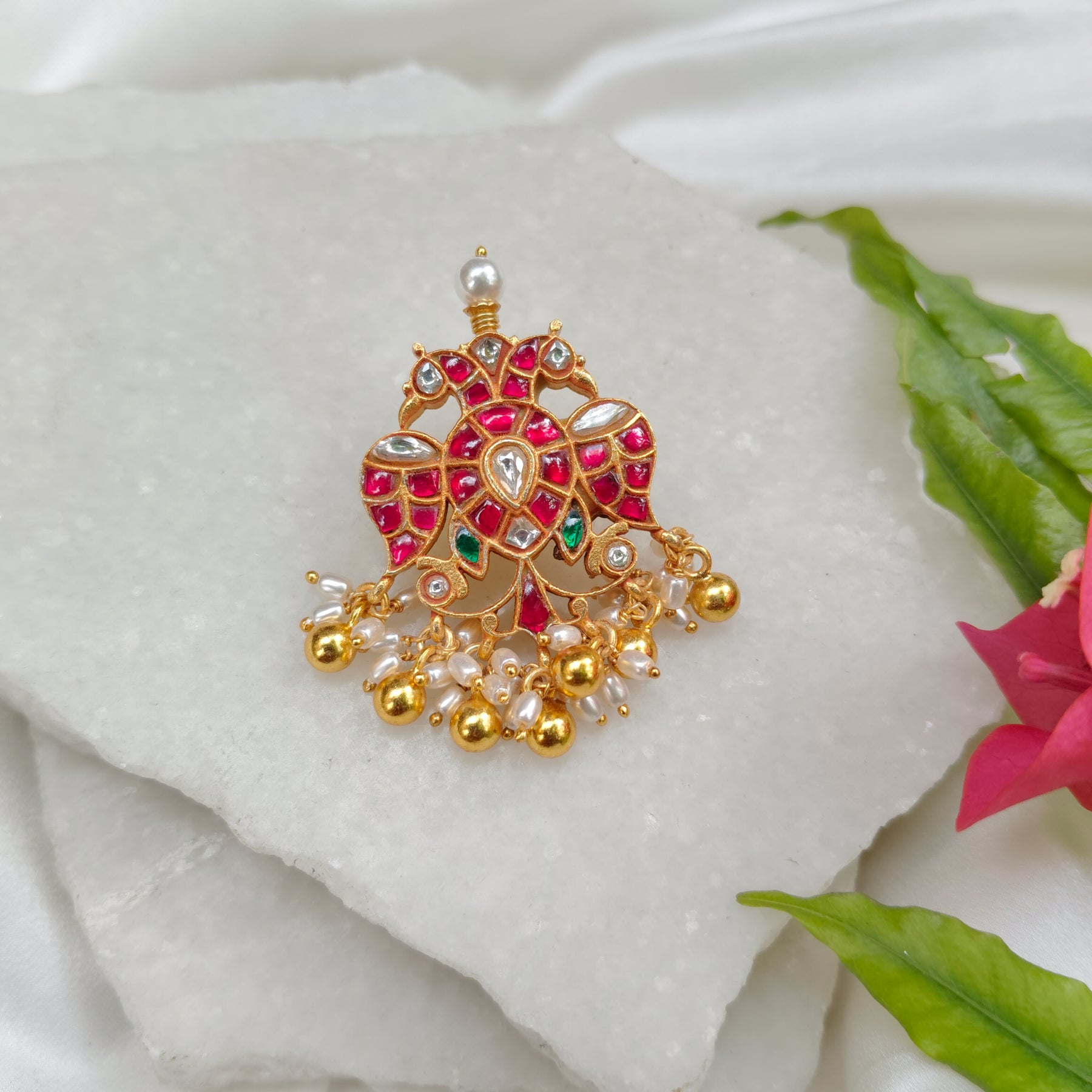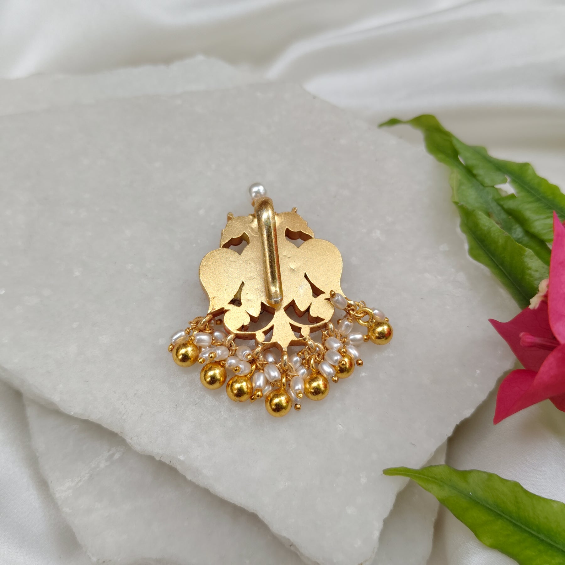 Dangling pearl-gold tassels add graceful movement, ideal for ethnic and festive elegance.