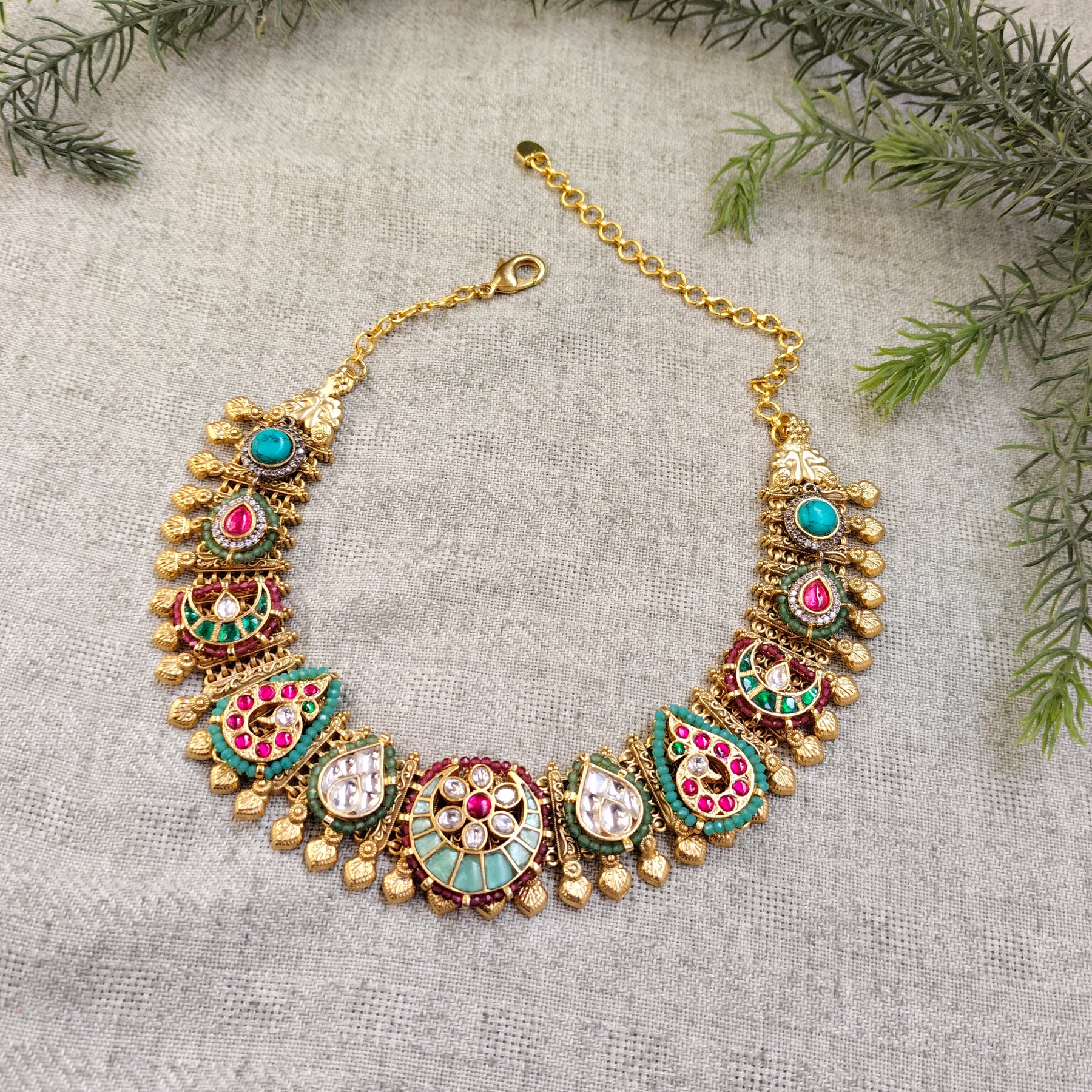 Crafted from high-quality brass and embellished with semi-precious stones, this jewellery showcases timeless elegance and fine craftsmanship. Perfect for everyday wear or special occasions, it adds a graceful and sophisticated touch to any look.