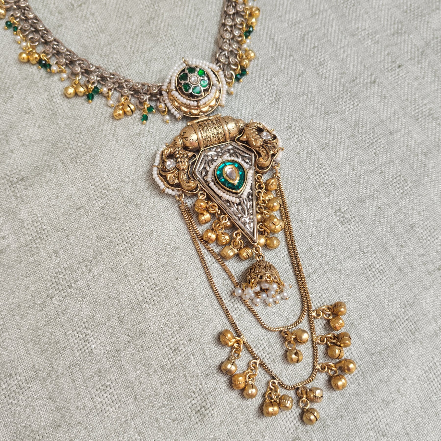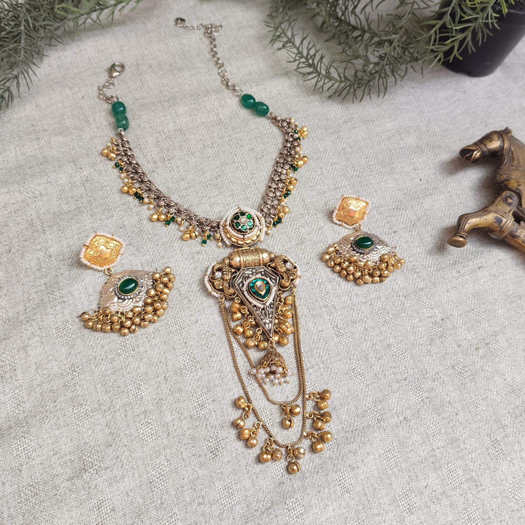 Crafted from high-quality brass and embellished with semi-precious stones, this jewellery showcases timeless elegance and fine craftsmanship. Perfect for everyday wear or special occasions, it adds a graceful and sophisticated touch to any look.