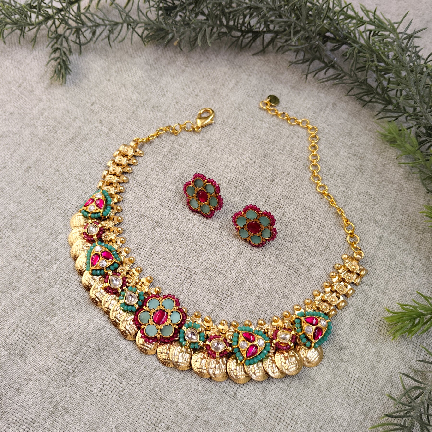 Crafted from high-quality brass and embellished with semi-precious stones, this jewellery showcases timeless elegance and fine craftsmanship. Perfect for everyday wear or special occasions, it adds a graceful and sophisticated touch to any look.