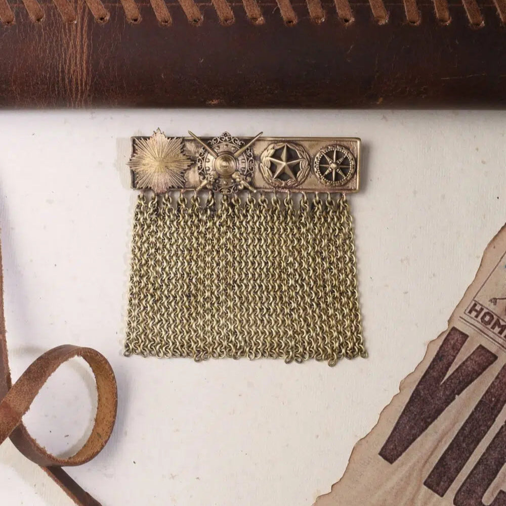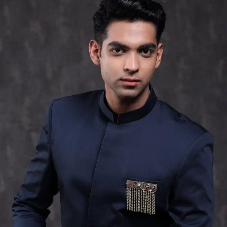 Featuring exquisitely crafted Royal army statement brooch made of bronze metal in antique gold. It is durable, lightweight and elegantly designed. Wear this precious adornment on a bandhgala or any jacket.This brooch sure is a wedding essential.