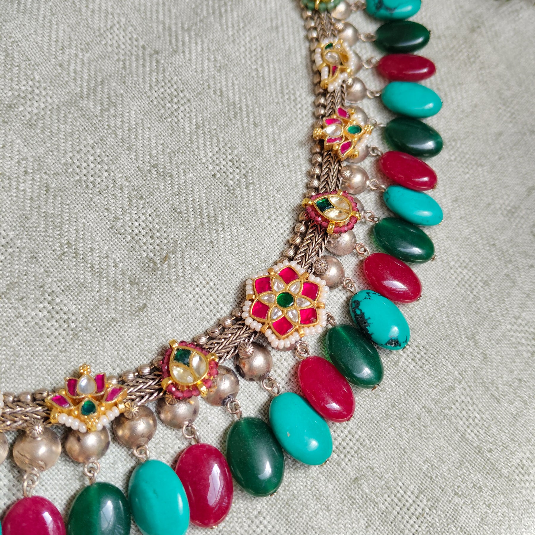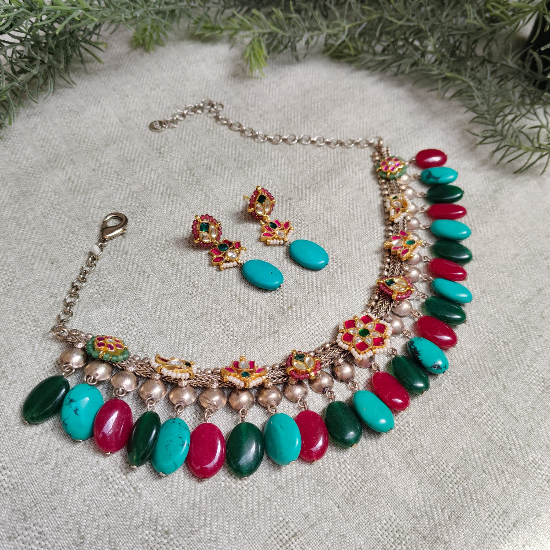 Crafted from high-quality brass and embellished with semi-precious stones, this jewellery showcases timeless elegance and fine craftsmanship. Perfect for everyday wear or special occasions, it adds a graceful and sophisticated touch to any look.