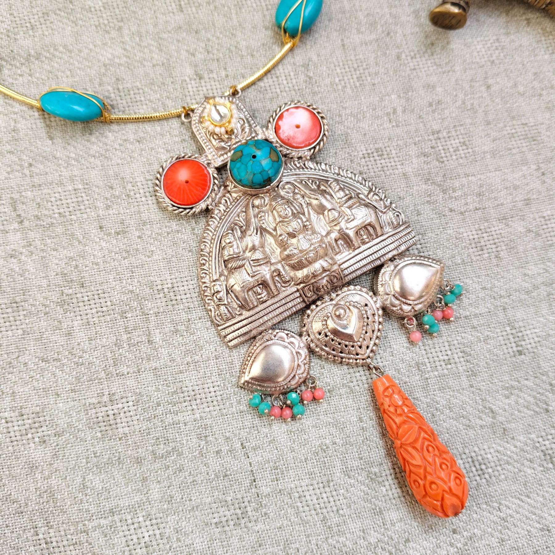 Crafted from high-quality brass and embellished with semi-precious stones, this jewellery showcases timeless elegance and fine craftsmanship. Perfect for everyday wear or special occasions, it adds a graceful and sophisticated touch to any look.
