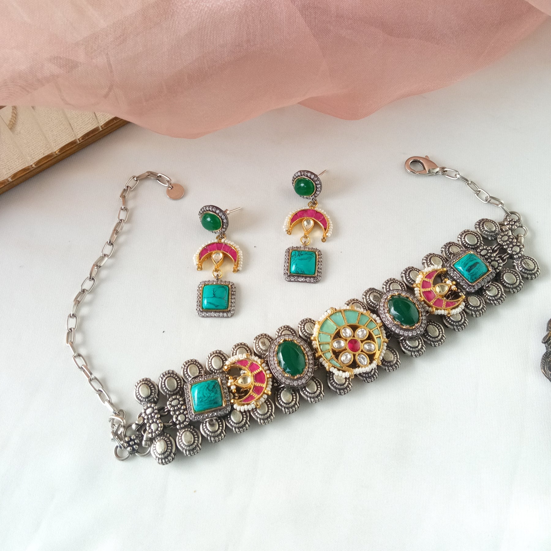 Crafted from high-quality brass and embellished with semi-precious stones, this jewellery showcases timeless elegance and fine craftsmanship. Perfect for everyday wear or special occasions, it adds a graceful and sophisticated touch to any look.