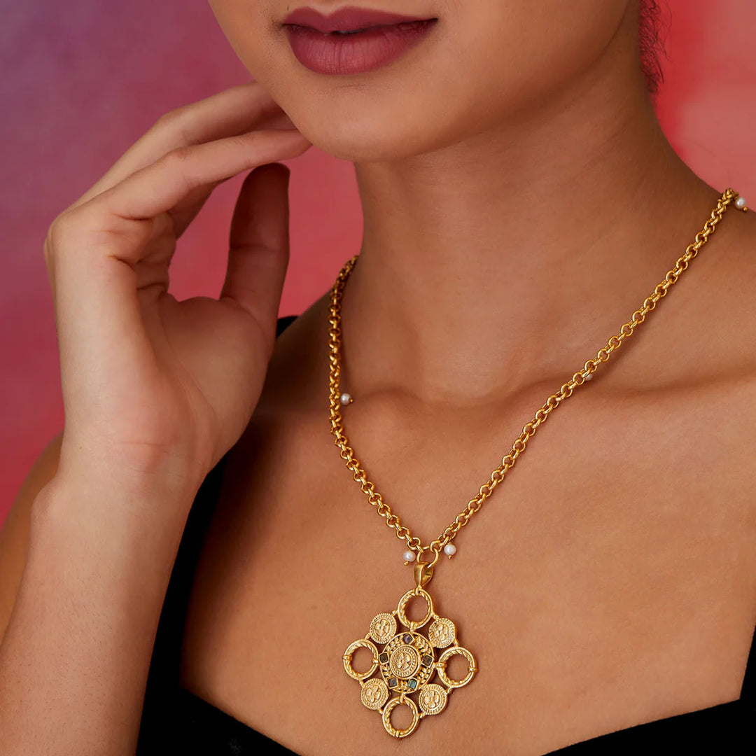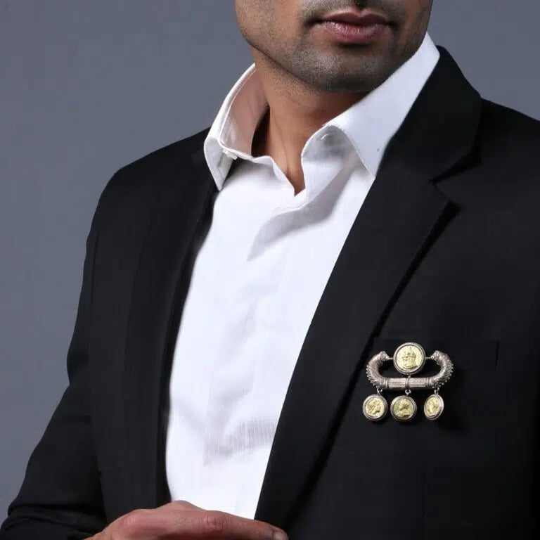 Inspired by Alexander Nevsky, this Classical coin brooch is meant to depict the era when he was one of the most celebrated commanders and diplomat. It will look best on any Indian ceremonial outfits. The Russian inspired brooch is a celebration of legacy just as you create your own.