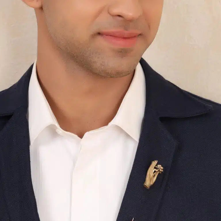 This elegantly crafted The Lotus Hand Pin in antique gold is made of brass metal. Wear this precious adornment with a formal boardroom meeting or a wedding.