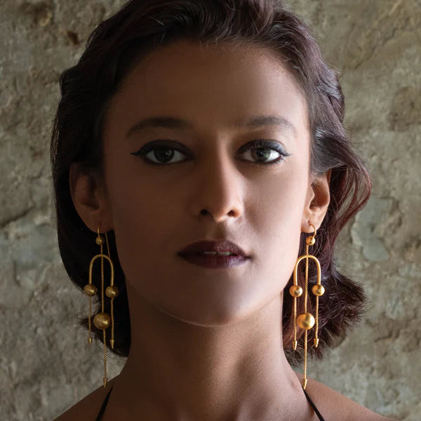 AVANI Gold Faux Tiger Claw Red Lens Earrings